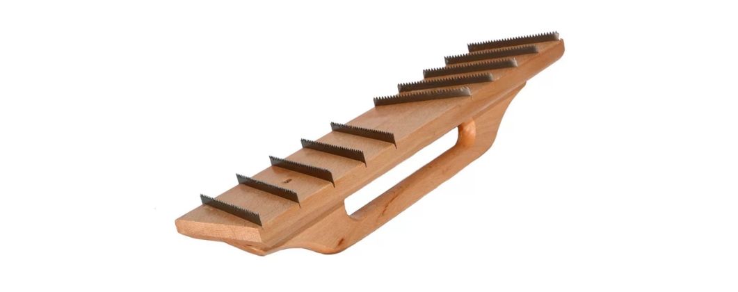 Самостоятельно сделать рубанок для газобетона также можно с применением саморезов. В этом случае можно использовать не кромки, а гвозди. Тогда самостоятельное изготовление рубанка для газобетона становится еще более простым процессом. В предварительно приготовленную доску нужно вкрутить саморезы, у которых длина чуть превышает толщину основания. Получившийся инструмент напоминает щетку, у которой жесткий «ворс».