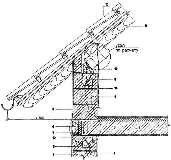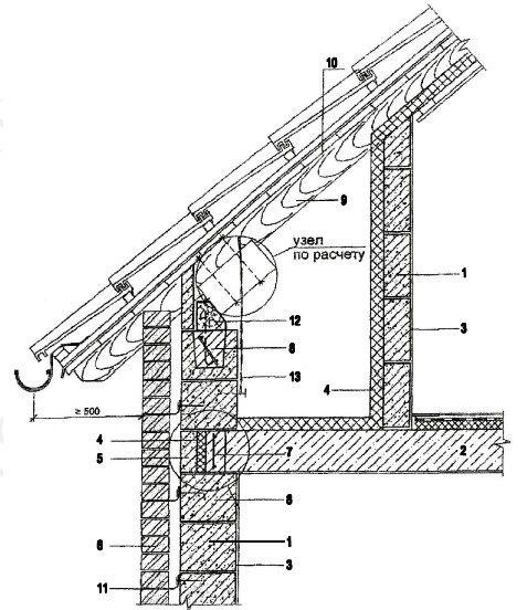 Сопряжение элементов скатной кровли с наружной стеной (Теплый чердак (мансарда))