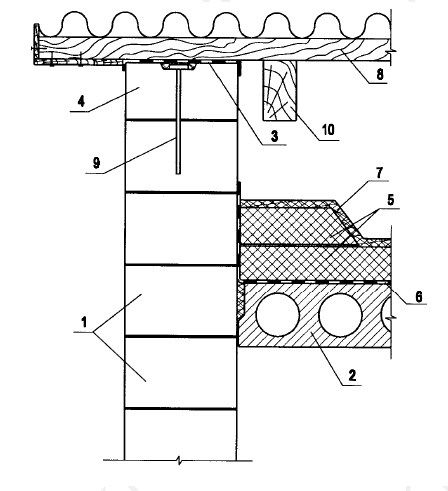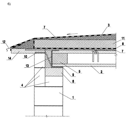 Примыкание плоской кровли к несущей наружней стене с карнизом