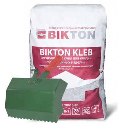 Клей Bikton для газобетона может полностью заменить цементный обычный кладочный раствор за исключением первого ряда блоков. Использование клея позволяет заметно снизить мостики холода, через которые проходит около 15% всех тепловых потерь.